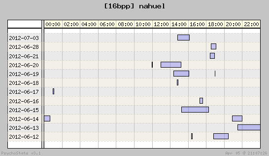 | 2012-06-21 | 4 | 12 | 0.33 | 1 | 25.00% | 4.88% | 00:29:39 | 137.17 |