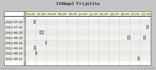 | 2012-06-14 | 7 | 10 | 0.70 | 5 | 71.43% | 13.25% | 00:17:04 | 248.62 |