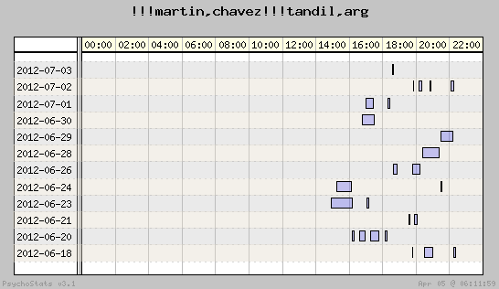 | 2012-07-01 | 15 | 7 | 2.14 | 6 | 40.00% | 14.63% | 00:34:03 | 457.63 |
