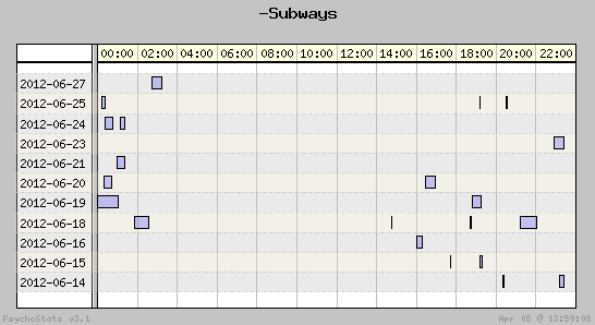 | 2012-06-23 | 24 | 10 | 2.40 | 8 | 33.33% | 17.13% | 00:27:30 | 389.47 |