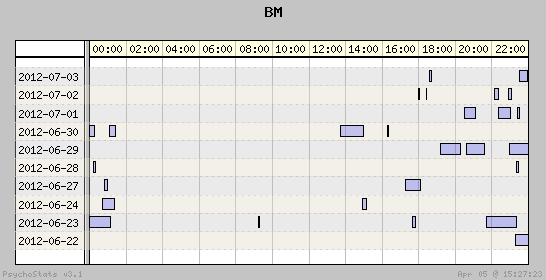 | 2012-07-03 | 11 | 24 | 0.46 | 3 | 27.27% | 17.15% | 00:33:03 | 239.87 |