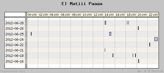 | 2012-06-28 | 0 | 1 | 0.00 | 0 | 0.00% | 0.00% | 00:14:13 | 133.30 |