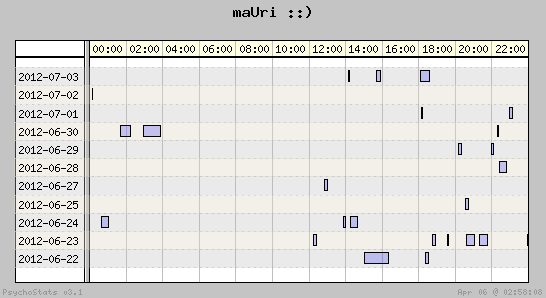 | 2012-06-24 | 28 | 23 | 1.22 | 9 | 32.14% | 17.36% | 00:52:36 | 240.67 |