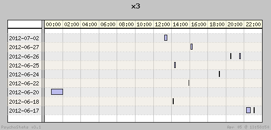 | 2012-06-27 | 3 | 6 | 0.50 | 1 | 33.33% | 21.25% | 00:10:44 | 242.37 |