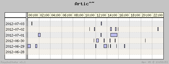 | 2012-06-28 | 13 | 7 | 1.86 | 5 | 38.46% | 20.99% | 00:26:38 | 277.76 |