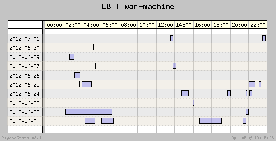 | 2012-06-29 | 8 | 16 | 0.50 | 0 | 0.00% | 11.43% | 00:30:05 | 153.72 |