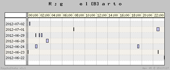 | 2012-06-29 | 8 | 11 | 0.73 | 4 | 50.00% | 25.00% | 00:17:04 | 97.07 |