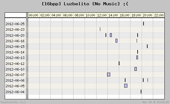 | 2012-06-04 | 1 | 3 | 0.33 | 0 | 0.00% | 22.22% | 00:03:12 | 253.37 |