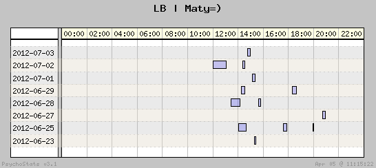 | 2012-07-03 | 7 | 7 | 1.00 | 5 | 71.43% | 23.02% | 00:12:24 | 348.78 |