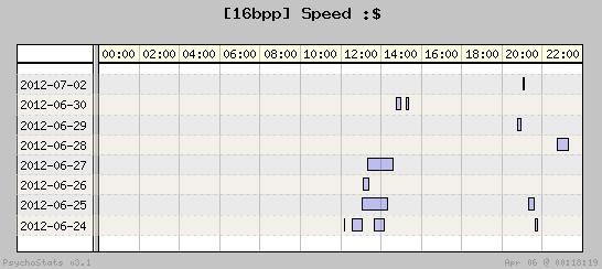 | 2012-06-26 | 3 | 11 | 0.27 | 0 | 0.00% | 10.24% | 00:16:32 | 139.67 |