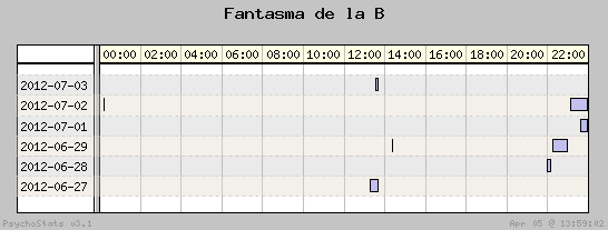 | 2012-07-02 | 12 | 28 | 0.43 | 5 | 41.67% | 12.79% | 00:49:09 | 197.79 |